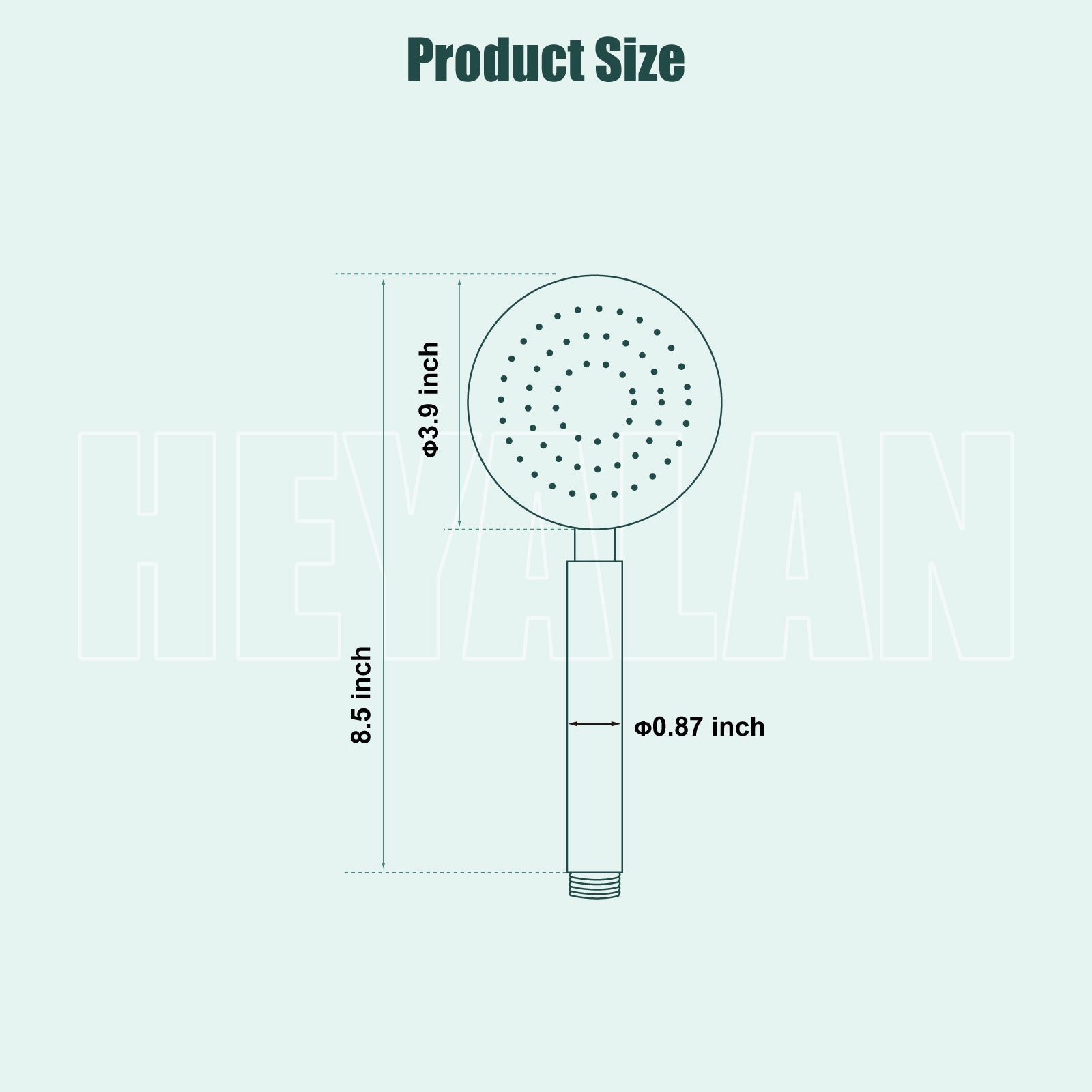 Heyalan Hand Held Shower Wand Head Sprayer High Pressure Handheld Round SUS 304 Stainless Steel Showerhead Powerful Rainfall Water Spray Bathroom High Flow Luxury Shower Faucet Single Mode