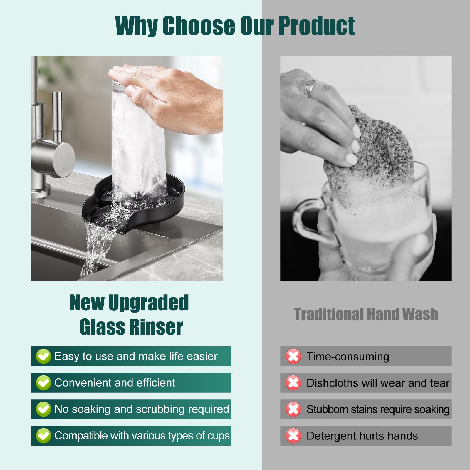 [Fits More Dimensions] Heyalan faucet glass rinser for kitchen sink is specially designed to quickly clean multi-size glassware, help spend less time soaking and scrubbing. Making washing out cups and bottles a breeze.