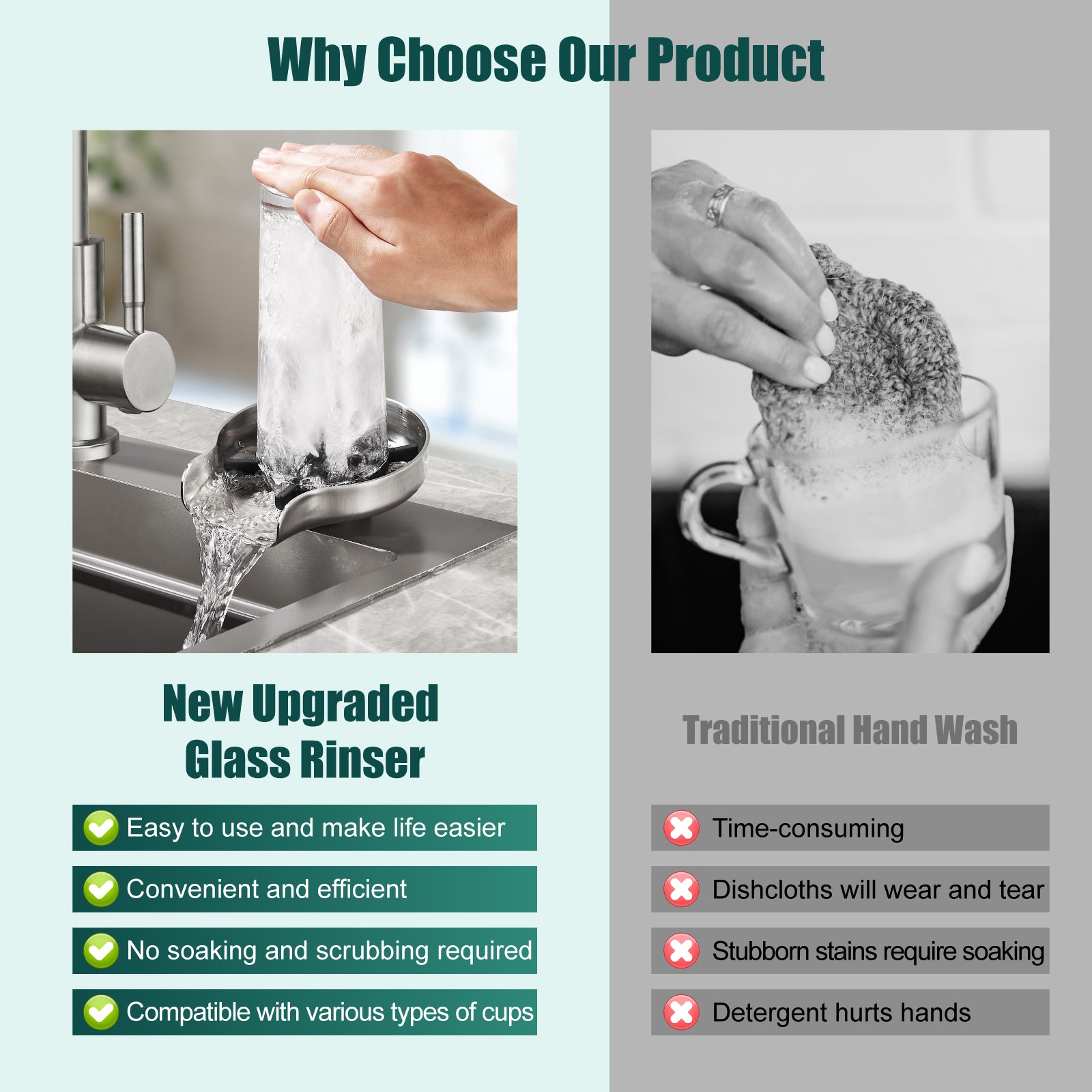 [Fits More Dimensions] Heyalan faucet glass rinser for kitchen sink is specially designed to quickly clean multi-size glassware, help spend less time soaking and scrubbing. Making washing out cups and bottles a breeze.