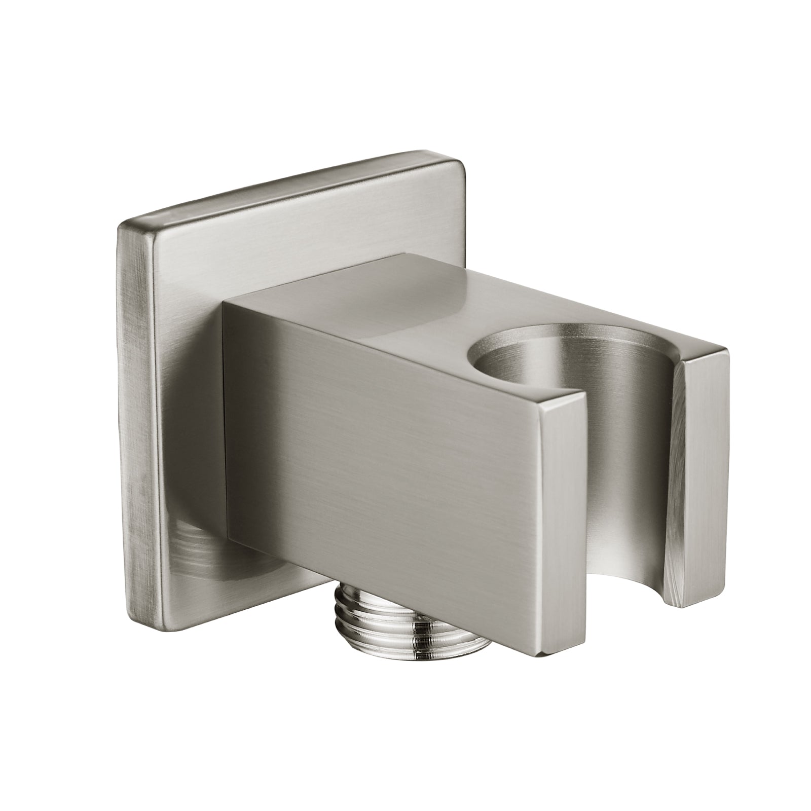 【Universal Standard】:The bracket features standard G 1/2" male threads for shower hose connection and NPT 1/2" for water pipe connection in the wall, fitting most handheld shower hand.